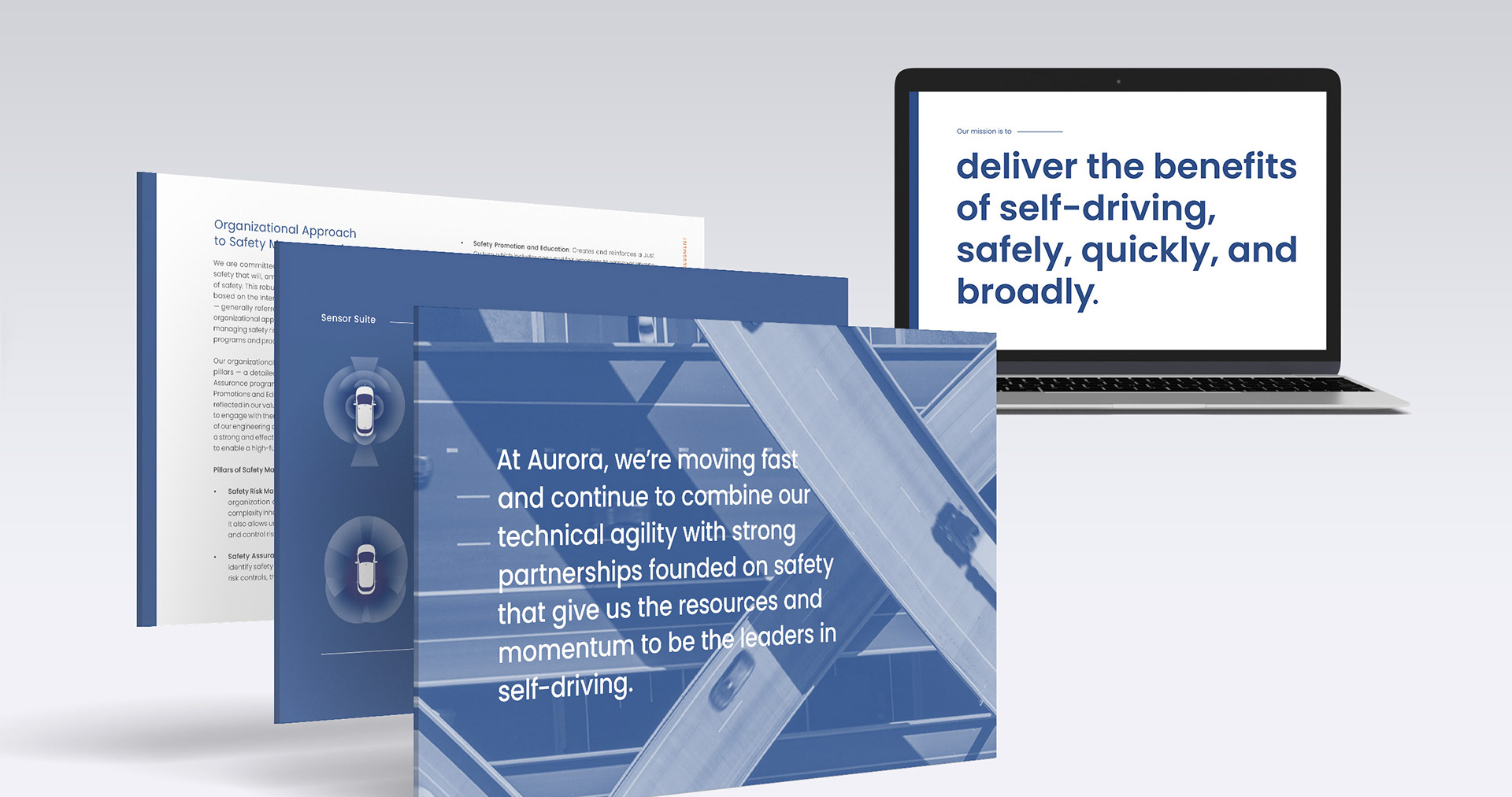 Aurora Innovation is a technology company focused on changing the future of self-driving. The VSSA, Voluntary Safety Self-Assessment, is a document outlining the safety measures taken by Aurora in the innovative space of self-driving. I worked across departments to develop a document that is informative, easy to understand, and meets the standards set forth by the National Highway Traffic Safety Administration.